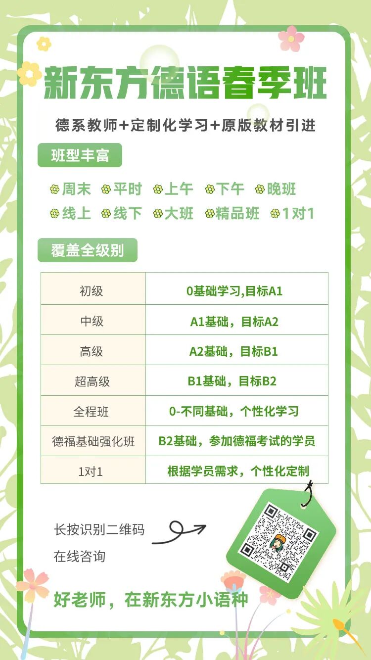 篇幅有限,更多5月德语初级、中级、高级、在线课、面授班,扫描下方二维码在线咨询。