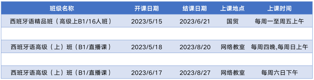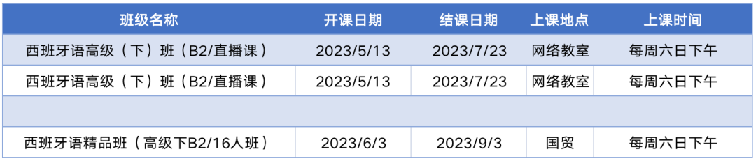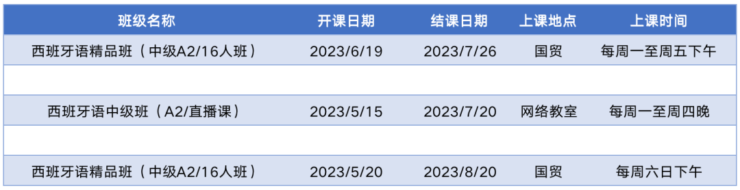 更多西语中级课程排期及优惠