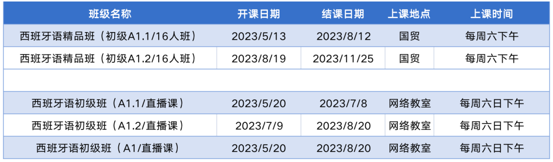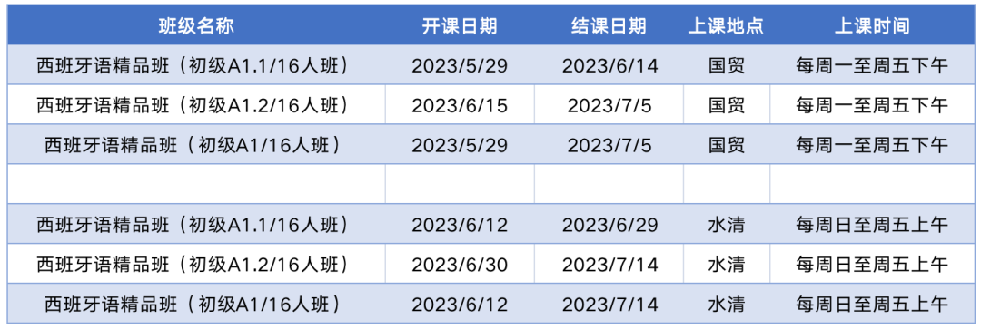 更多西语初级课程排期及优惠