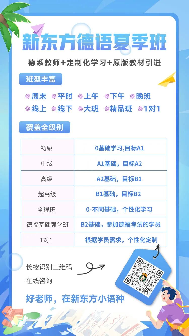 篇幅有限,更多7月德语初级、中级、高级、在线课、面授班,扫描下方二维码在线咨询。