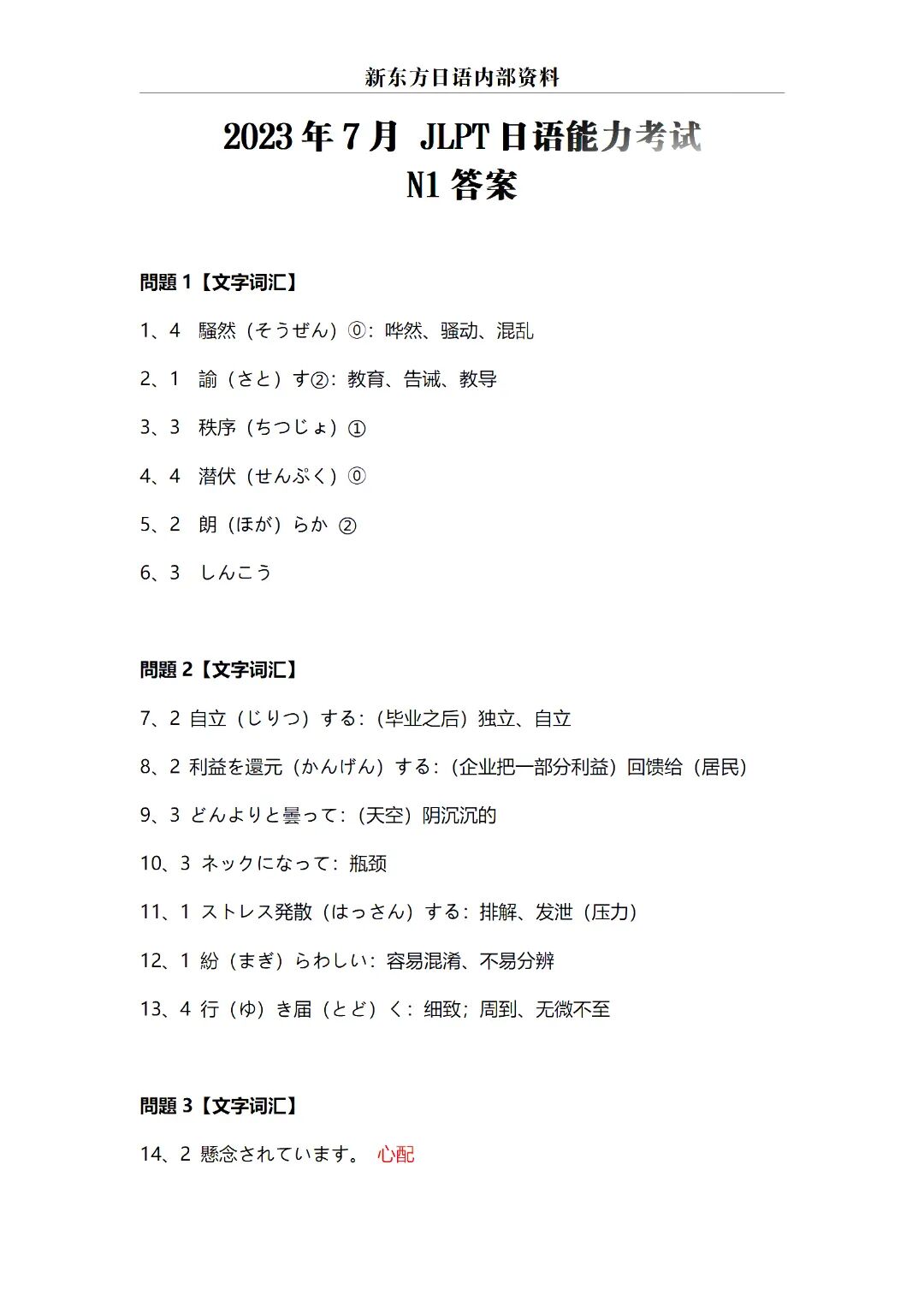 2023年7月 JLPT 日语能力考试