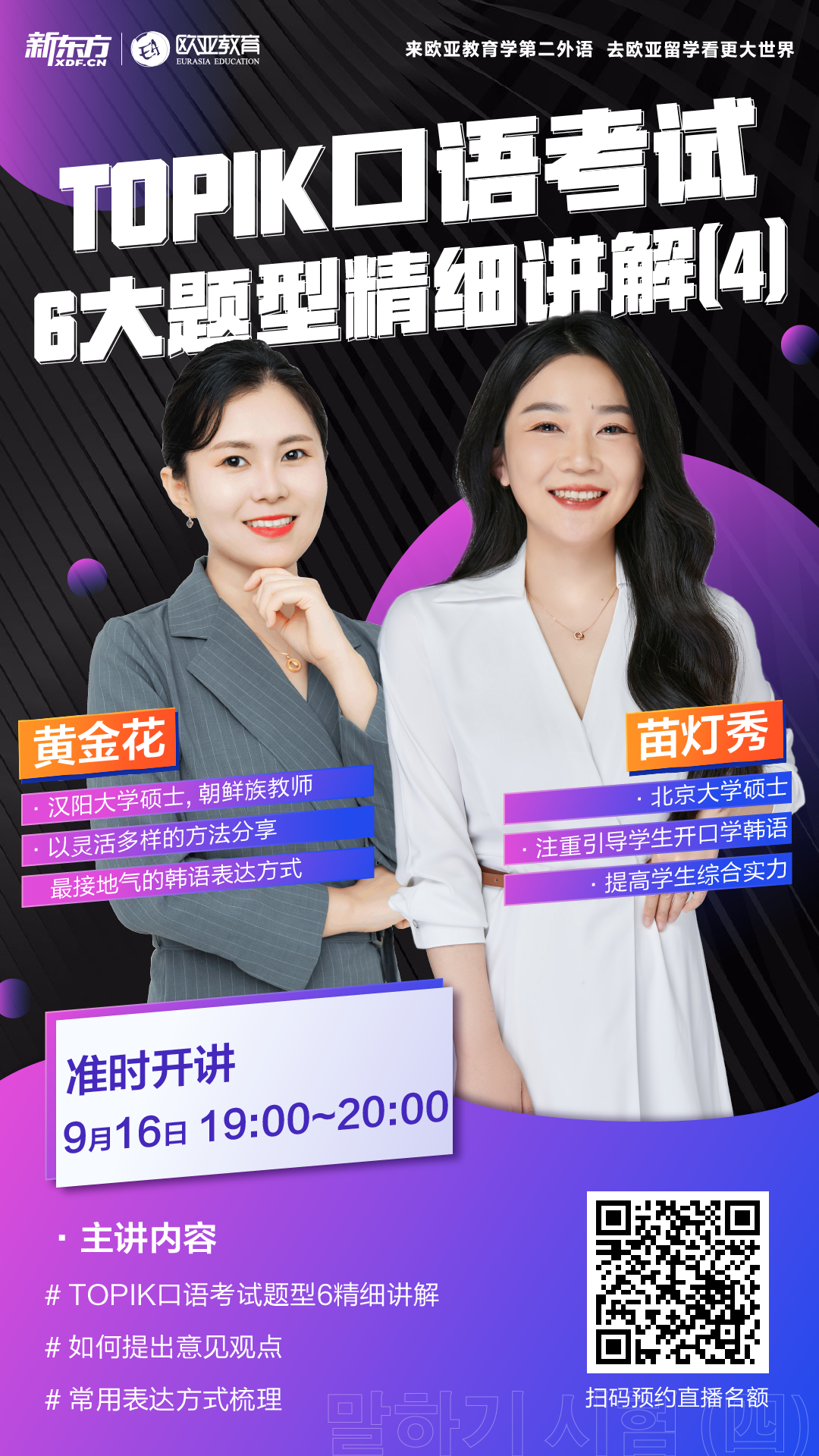 新东方【四天韩语TOPIK口语训练营】直播课开课啦!