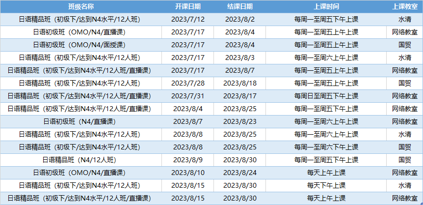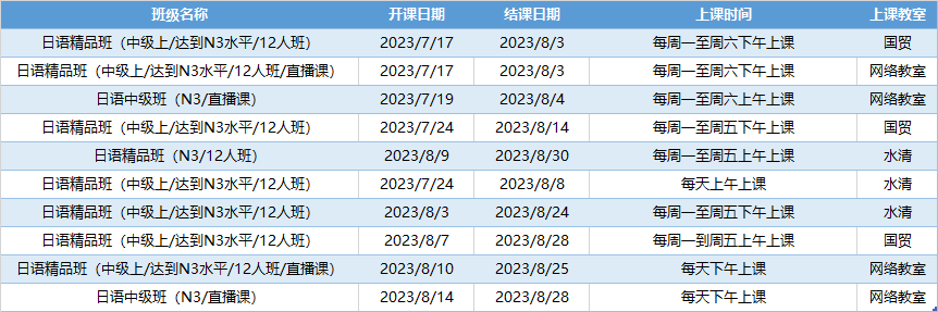 来看看日语的暑期课程表吧!