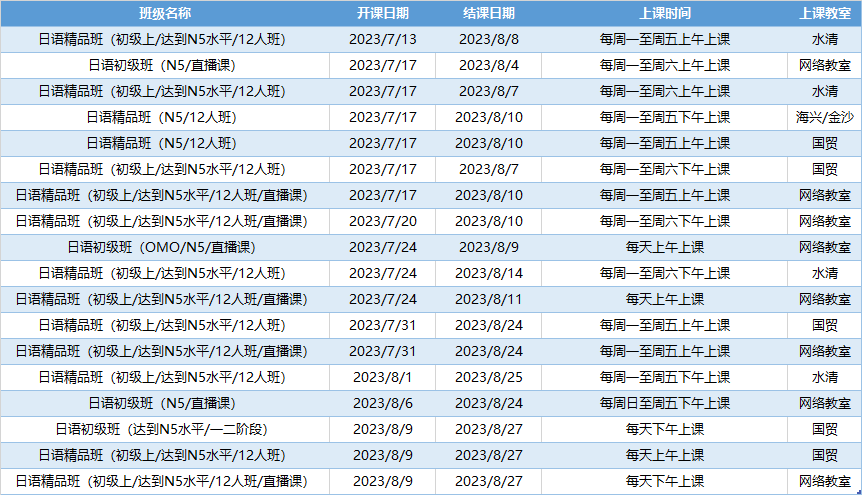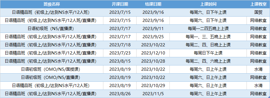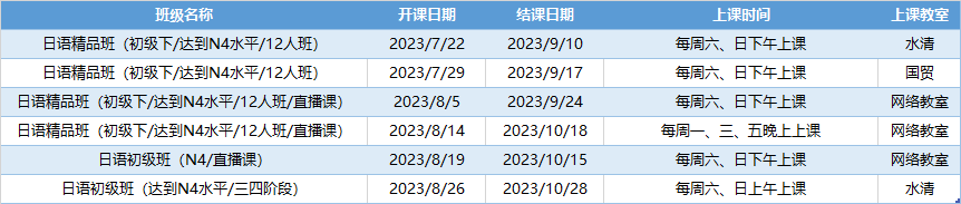 更多日语初级课程排期及优惠