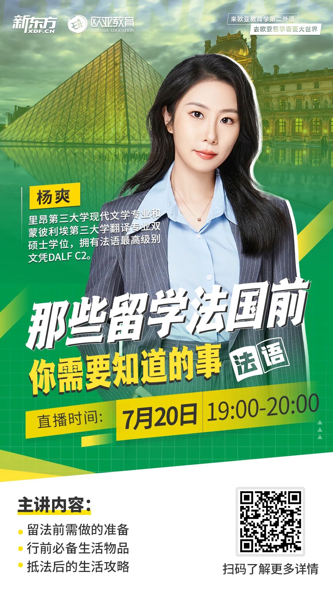今晚19:00,新东方法语老师杨爽为你直播答疑: