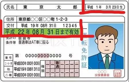 如图所示,因为日本现在的正式文书(如区役所转入转出的相关填写资料)、学生证、健康保险证、自动车免许证等证件资料的填写与申请过程中的出生日期或证件上标注的年份时限等很可能是用或要求你用元号来书写!