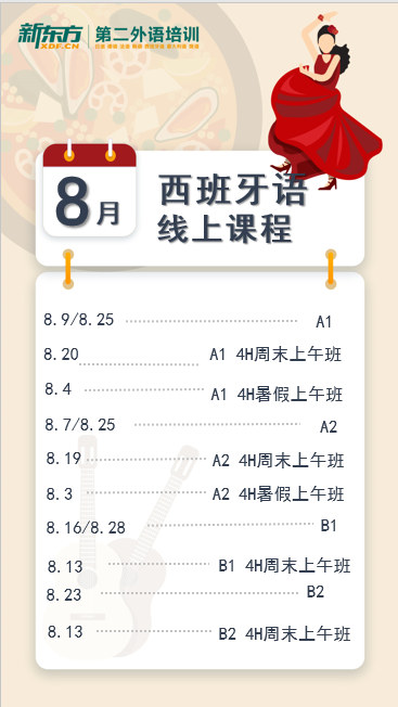 篇幅有限,更多8月西班牙语初级、中级、高级、在线课、面授班,扫描下方二维码在线咨询。