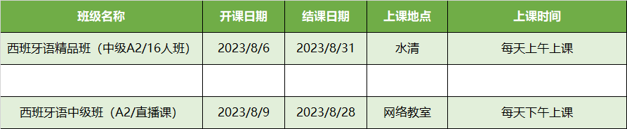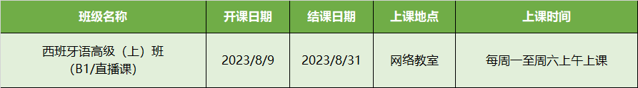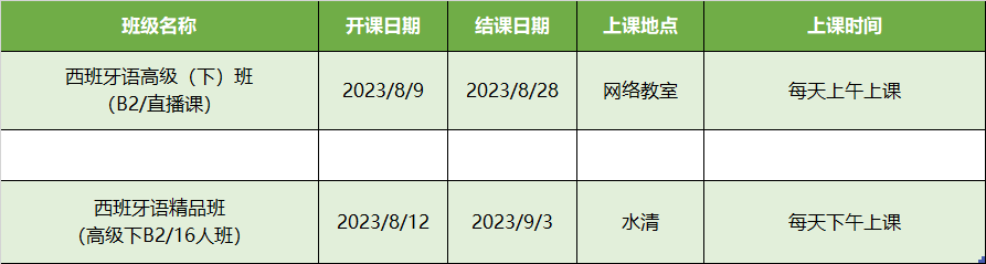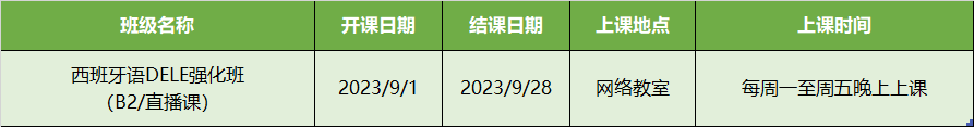 更多西语B1,B2级课程排期及优惠