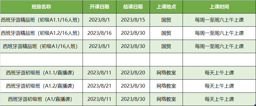 更多西语A1,A2级课程排期及优惠