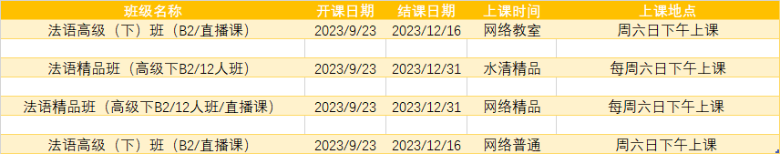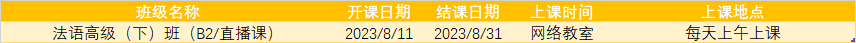 更多法语B1,B2课程排期及优惠