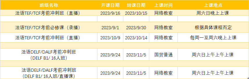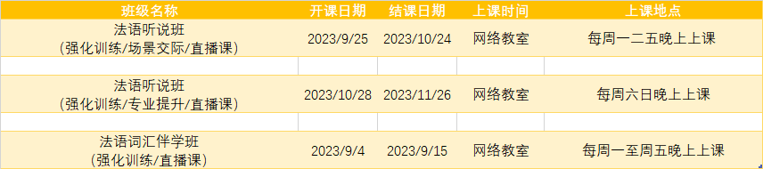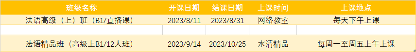 更多法语专项课程排期及优惠