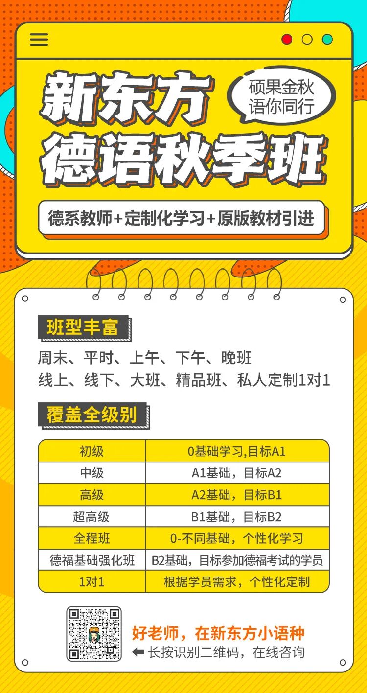 篇幅有限,更多秋季德语初级、中级、高级、在线课、面授班,扫描下方二维码在线咨询。