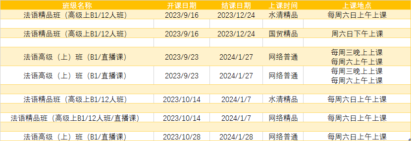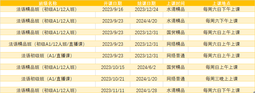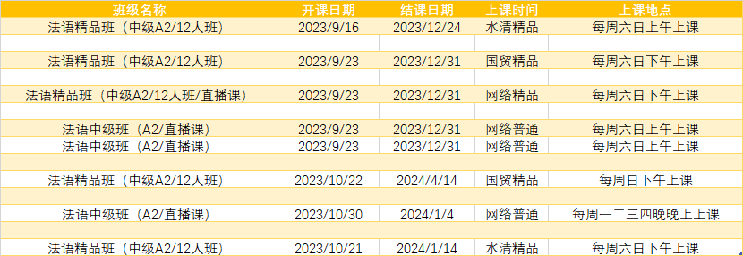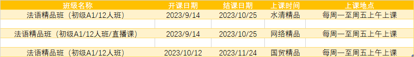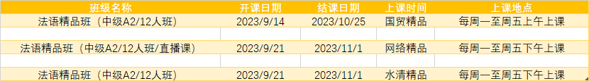 更多法语A1,A2课程排期及优惠