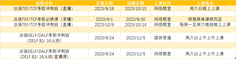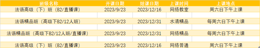 更多法语专项课程排期及优惠