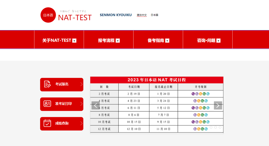 NAT是面向母语非日语的日语学习者,判定其日语能力的考试。定位主要是针对赴日留学者及想在日本就业人员的能力鉴定考试。