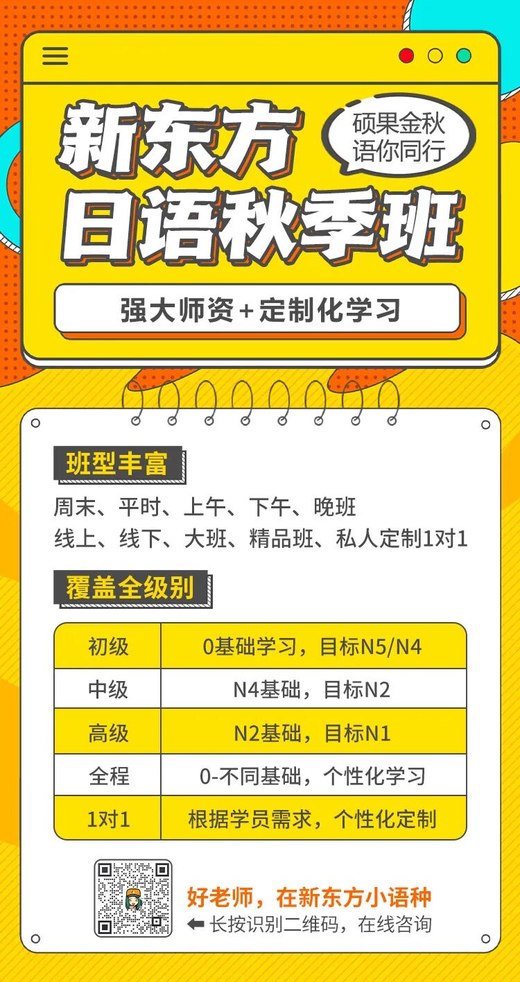 SO,新东方日语节后收心课来啦,10月、11月最新排期安排,快来pick适合你的课程吧~