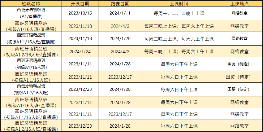 更多西语课程排期及优惠