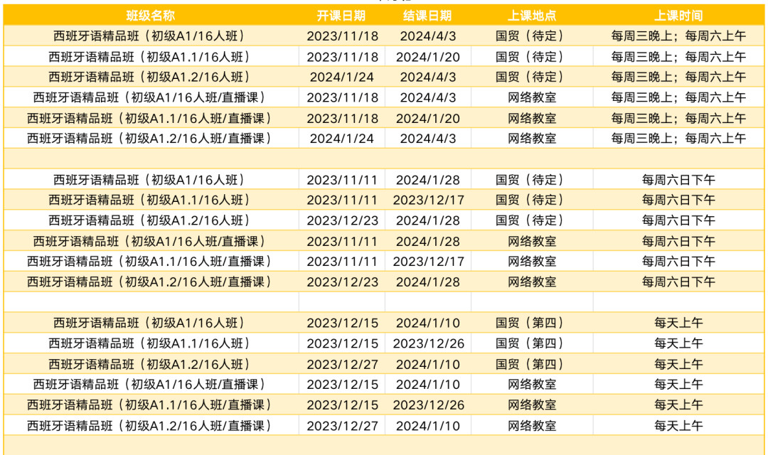 SO,新东方11月西语最新课表来啦,快来pick适合你的课程吧~