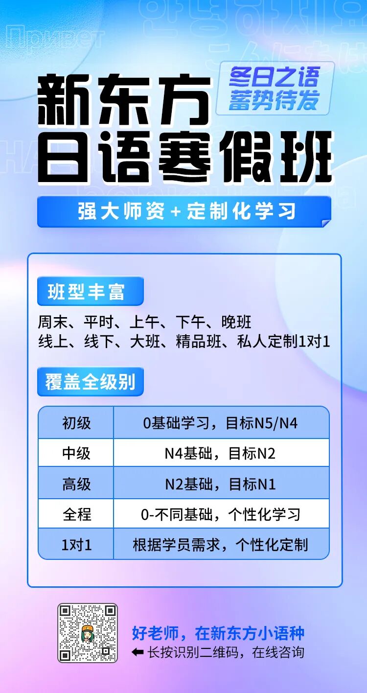来新东方小语种学日语吧,冬季班陪你一起收获成长!