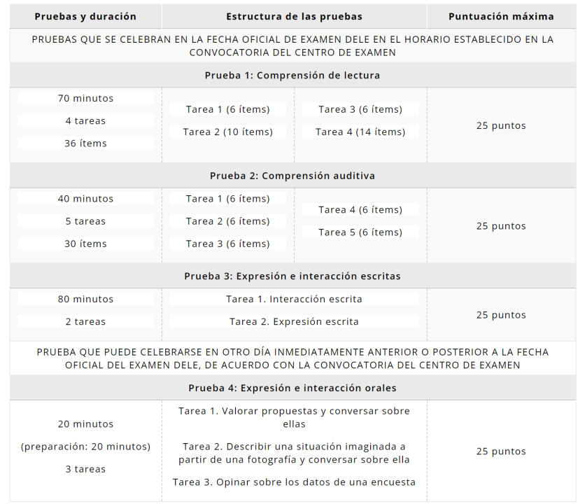 DELE考试分为四个部分,分别是阅读、听力、写作和口语,值得注意的是前三项会合在一起进行笔试,而口语则会单独进行考试。这也就意味着笔试和口试不一定在同一天进行考试,所以考生们一定要在考试前提前上官网检查自己的考试日期,并打印好准考证。