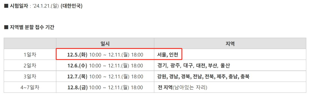 本次考试将2024年1月21日在韩国举行,以下为韩国时间:
