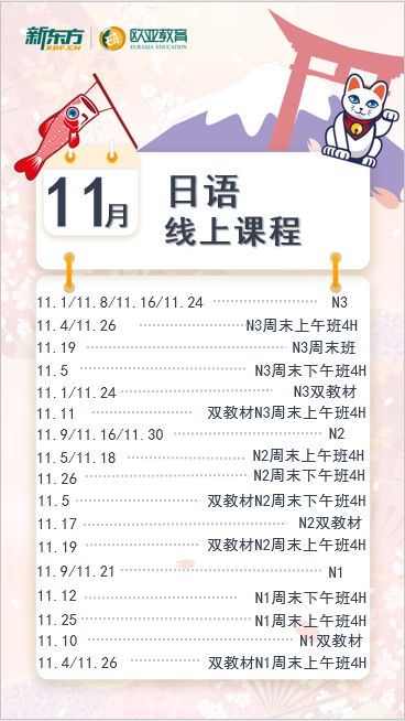 篇幅有限,更多秋季日语初级、中级、高级、在线课、面授班,扫描下方二维码~