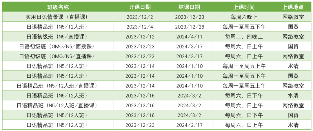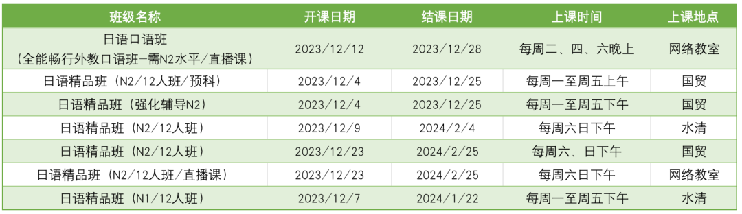 在线咨询日语其他班型课程排期及优惠