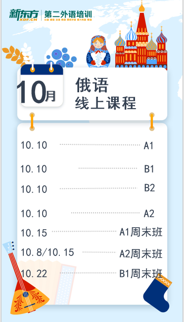 新东方10月俄语好课上新。来新东方和志同道合的朋友们一起学俄语吧~
