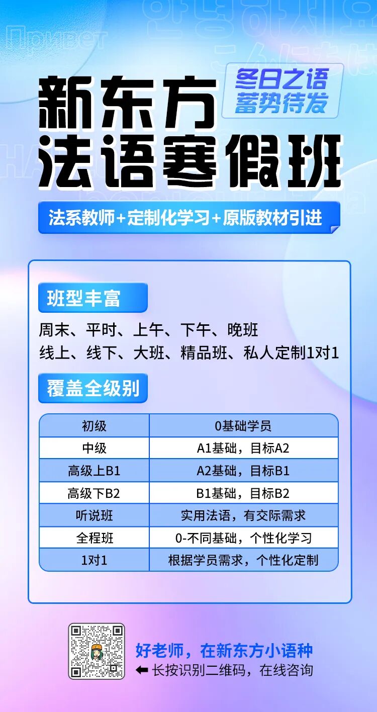 来新东方小语种学法语吧,在这个冬天收获更好的自己!