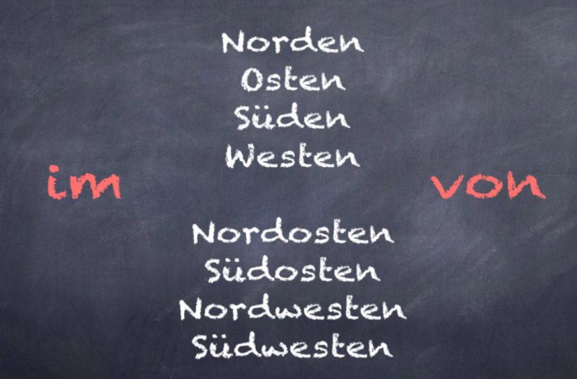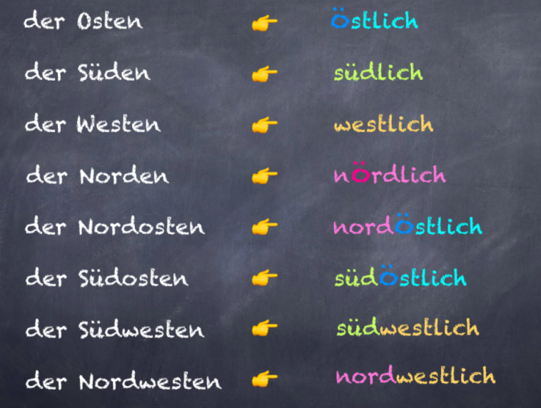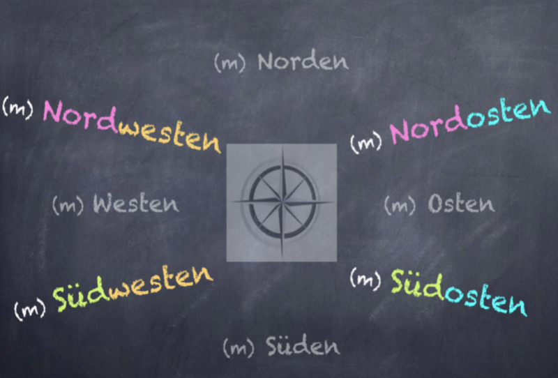 当我们要表示“具有所属关系”的地理位置,东南西北分别用德语怎么说: