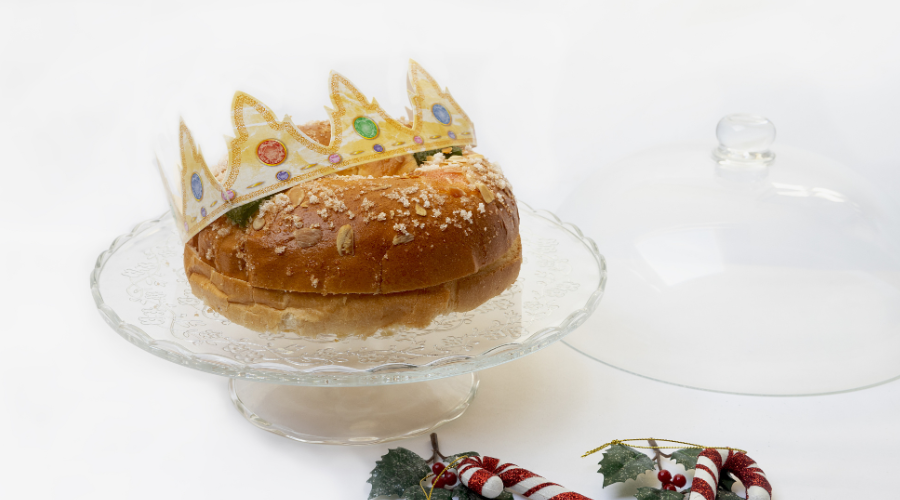 三王节最经典的点心就是国王蛋糕(Roscón de Reyes)了,家人们会一起分食这个巨大的糕点。
