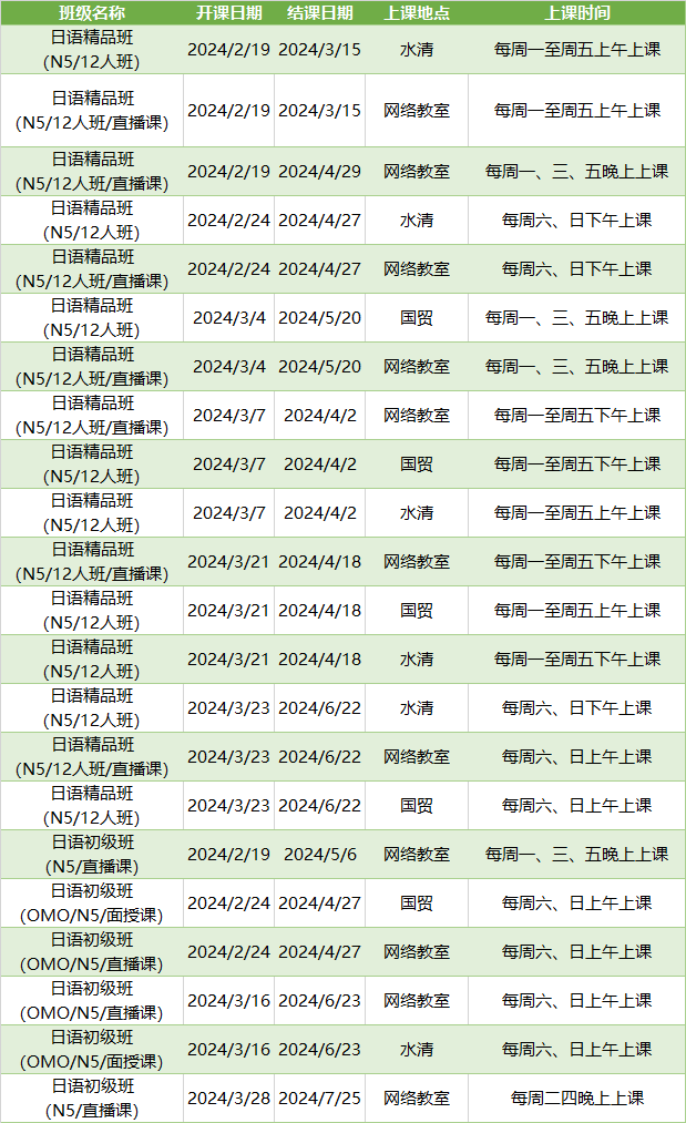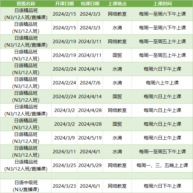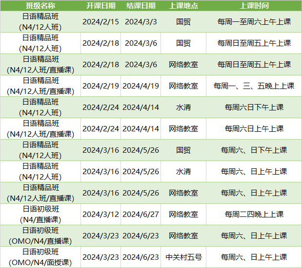 更多日语初级课程排期及优惠