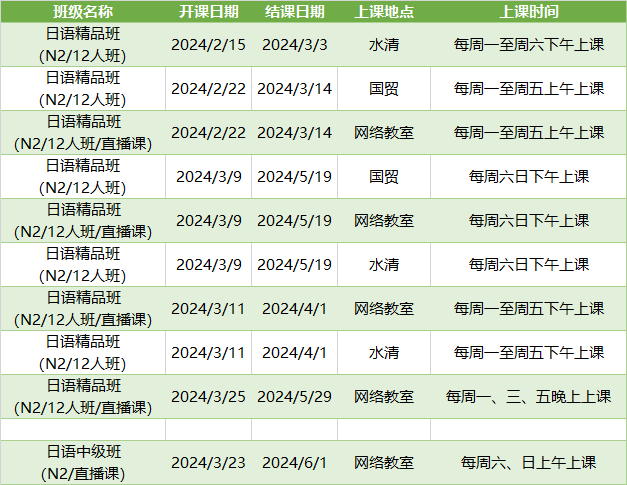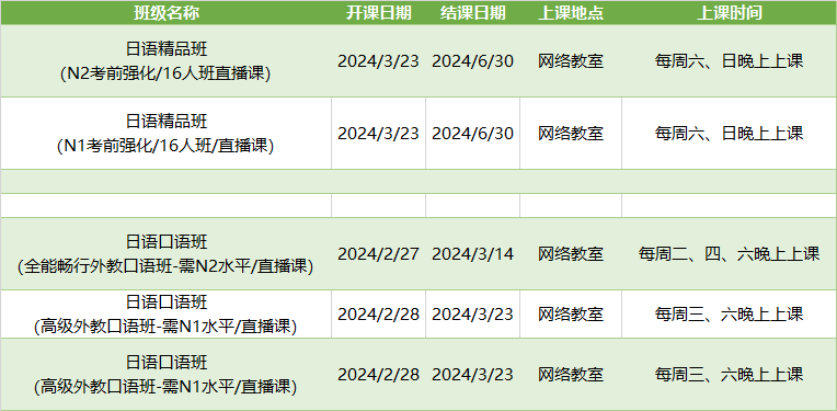 更多日语高级课程排期及优惠