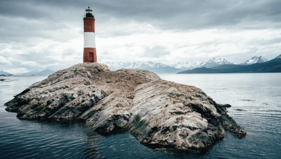 灯塔位于连接大西洋与太平洋的比格尔海峡之中。自乌斯怀亚湾出发的游轮之行,最吸引人的景观便是灯塔。红白相间的灯塔矗立在海天之间格外醒目。它立于礁石岛最高处,顶端的航标灯一明一灭,忠实地履行着引航职责。