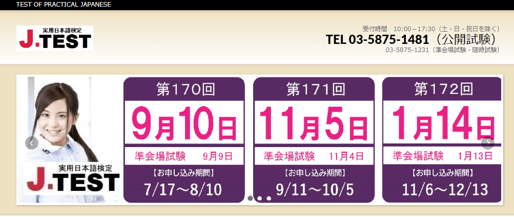 J-TEST是对母语为非日本语的人员进行日本语能力测试,分为上级考试(A-C级)、初级・中级考试(D-E)和入门级别考试(F-G)三种。