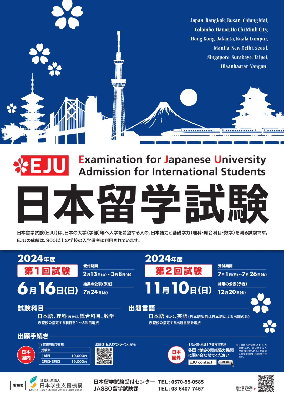 日本留学生考试,又叫留考,是指对希望考入日本大学(本科)等的外国留学生的日语能力以及基础学力进行考试评估,考试在每年的6月和11月举行。