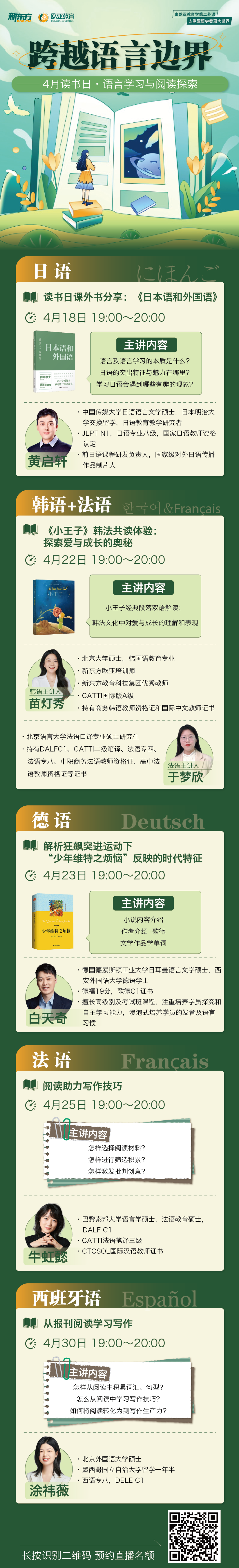 人间四月天,春暖天艳,书香氤氲。和新东方欧亚教育一起阅读小语种原著,开启一次与众不同的心灵之旅吧~