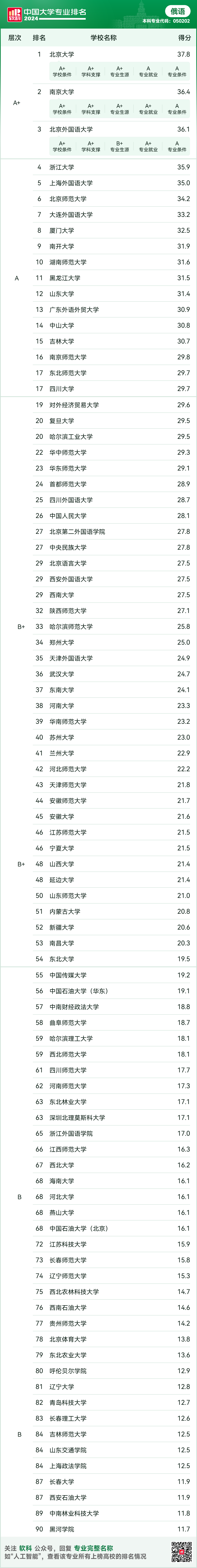 俄语专业排名结果如下: