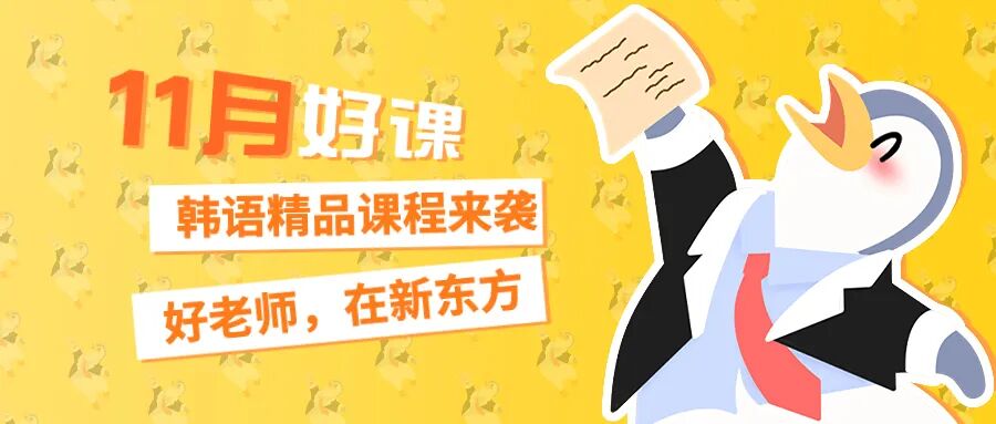 你好,11月~新同学,你好呀~欢迎来新东方和志同道合的朋友们一起学韩语呀~