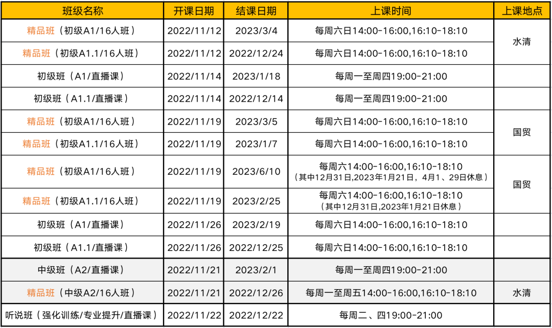 11月西语课程