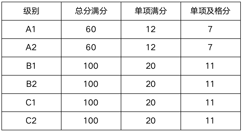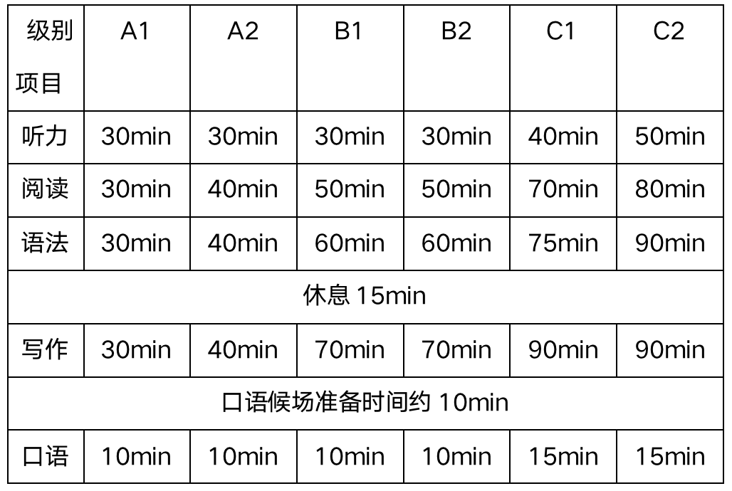 CILS各级别考试由于难度和体量不同,考试时长安排有所区别: