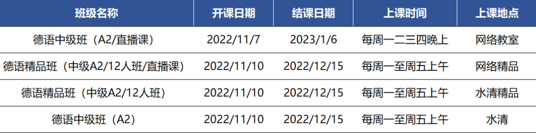 更多德语中高级课程排期及优惠