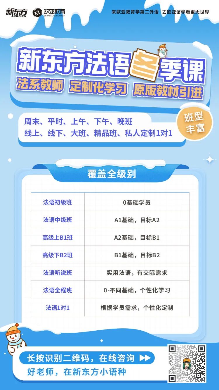 篇幅有限,更多11月法语在线课、面授班,扫描下方二维码在线咨询。