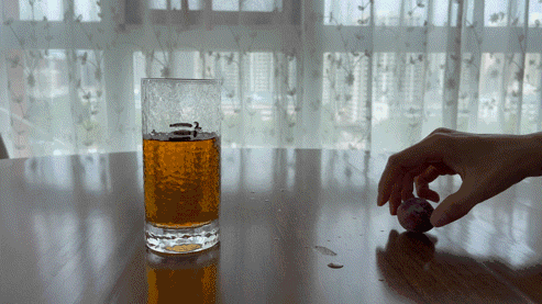 3.西梅分别放入杯子中,每次用记号笔标出水位上升的位置;