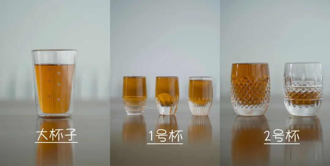 2. 先将大杯子中装满水,倒入同样大小的1号水杯,可以倒将近三杯;