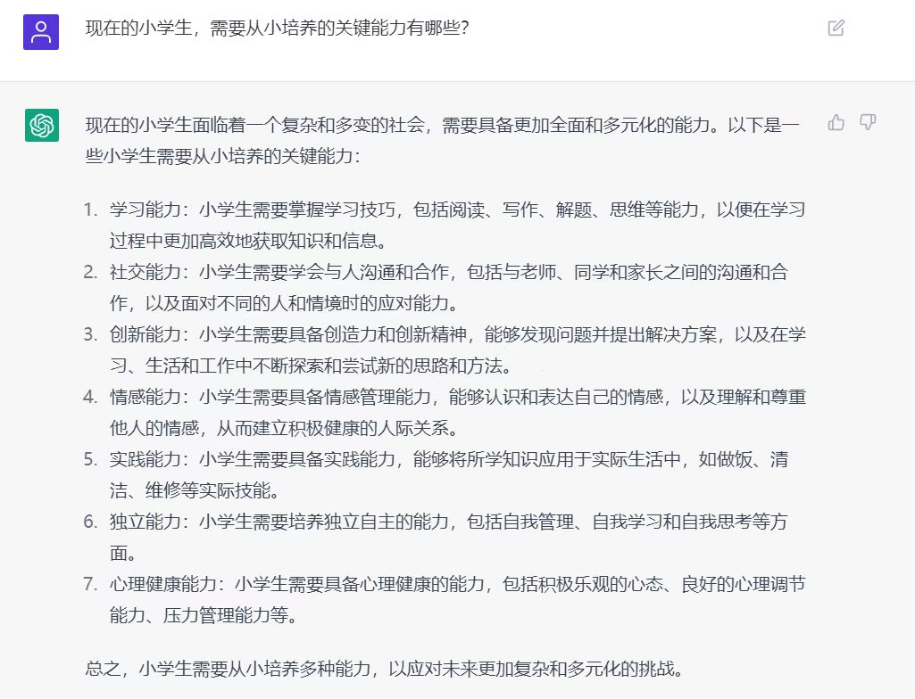 一个好问题就是与ChatGPT等人工智能对话的起点,但如何提出好问题呢?这是我们的孩子急需提高的能力。