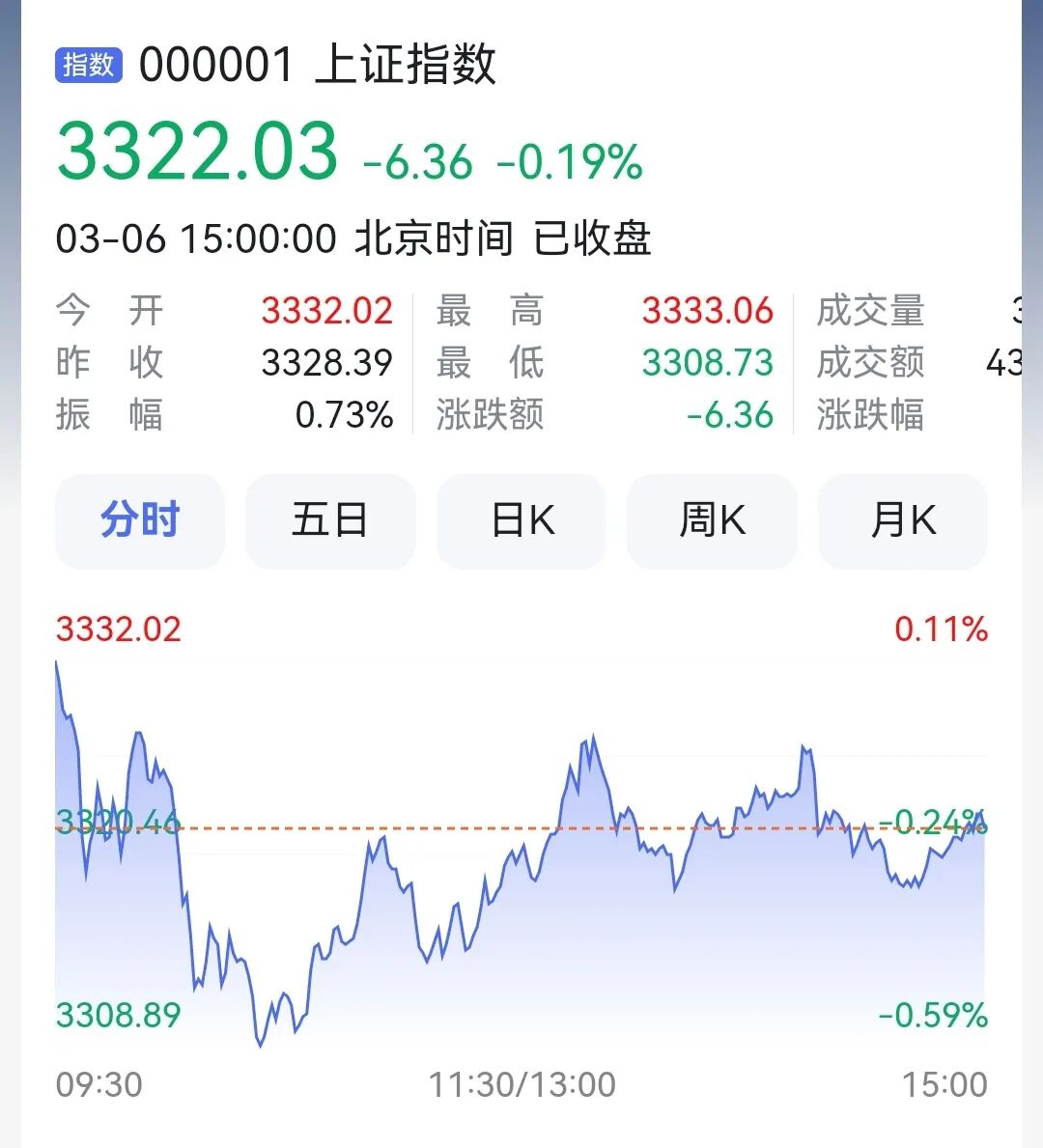 抽奖在3月5日(周日)23:59截止,参与抽奖福利的人数一共为1987位,填写的四位数字以3月6日(周一)上证指数收盘的后四位为准,从下图中可看出后四位数字为:2203: