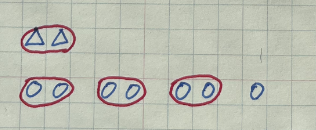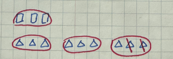 画的时候引导孩子上下两行各画一种图形,并且一一对应,这样更便于孩子观察;养成把一份量圈出来的好习惯,倍数关系看的更清晰。