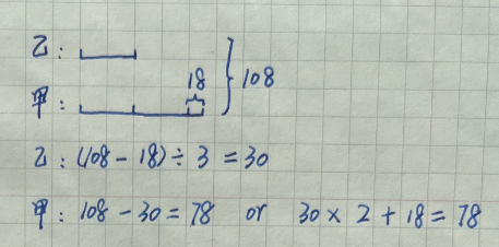 如:甲、乙两数的和是108,甲数比乙数的2倍多18,求甲、乙两数各是多少?