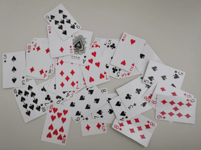 使用扑克牌:一副扑克牌中的1-10共40张牌。